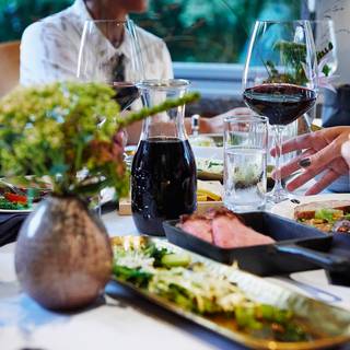 - Tre retter efter køkkenchefens valg – en forret, hovedret og dessert – lavet af årstidens råvarer. Retterne er veltilberedte og vi garanterer, at der er value for money.